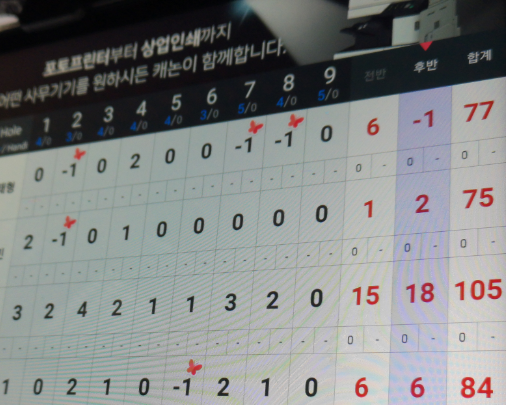 캐디스코어 84타. 첫홀 보기를 그대로 적었을 때 85타.